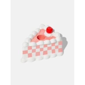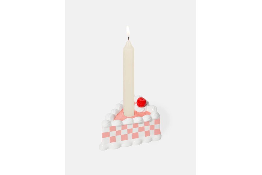 Το “Sweet Slice Candle Holder” της DOIY είναι κεραμικό κηροπήγιο σε σχήμα κομματιού τούρτας με ροζ καρό σχέδιο και κερασάκι στην κορυφή.